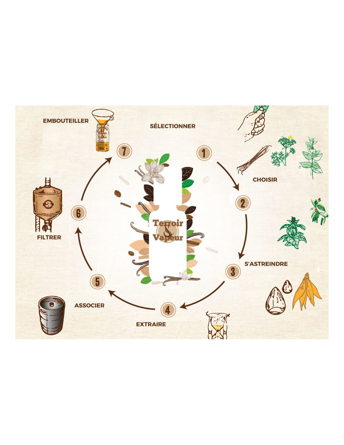 Le savoir-faire de Terroir et Vapeur pour une vape à base de plantes et aux ressentis authentiques, repose sur 2 étapes clés :