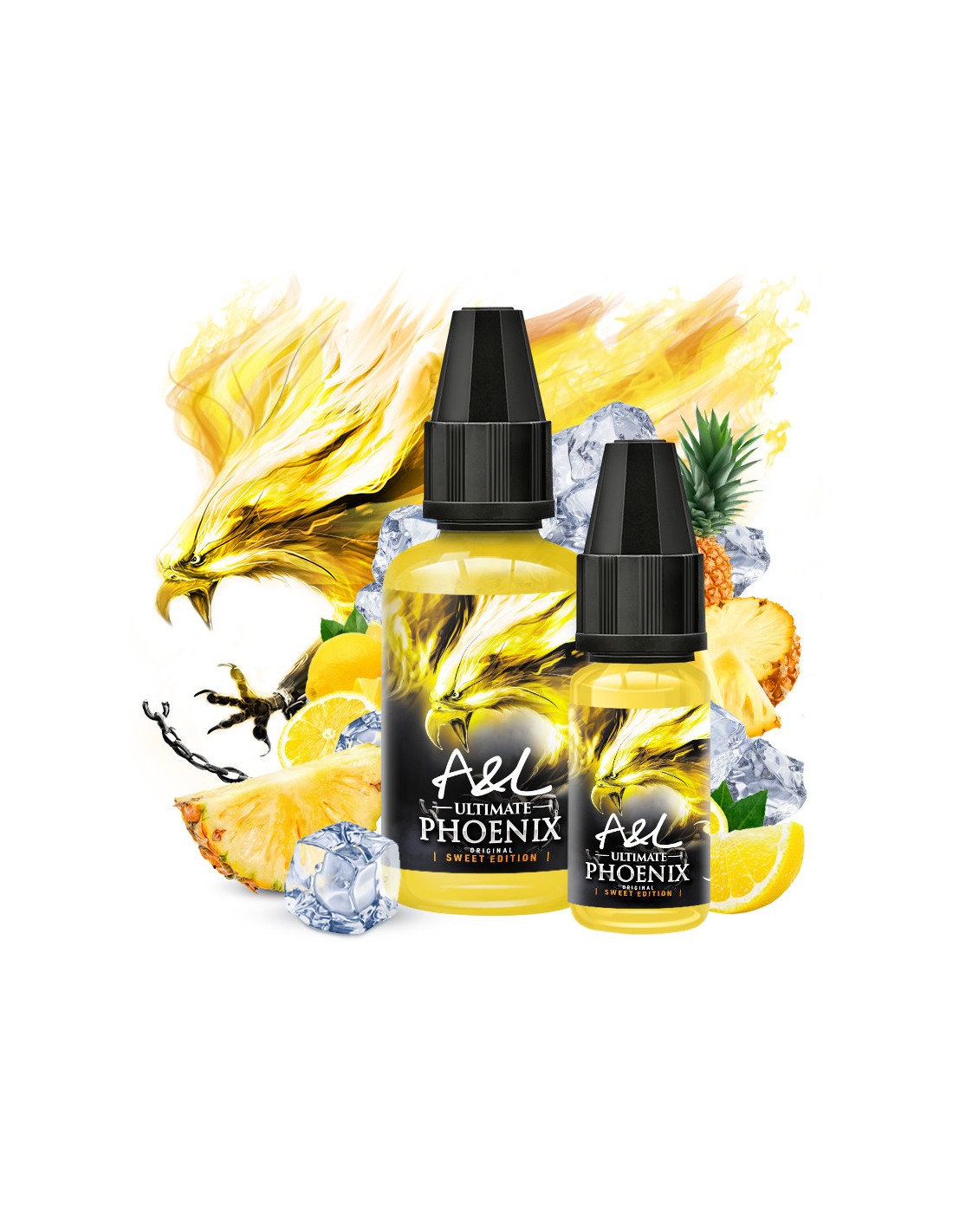 ARÔME PHOENIX 30ML - A&L Un duo unique d'ananas et de citron parfaitement sublimé par une fraîcheur glaciale. Il est uniquement réservé aux préparations DIY et doit être mélangé avec une base (nicotinée ou non) en PG/VG. Il ne peut pas s’utiliser directement. Dosage : 10% (50/50) – Steep : 1 à 2 jours.