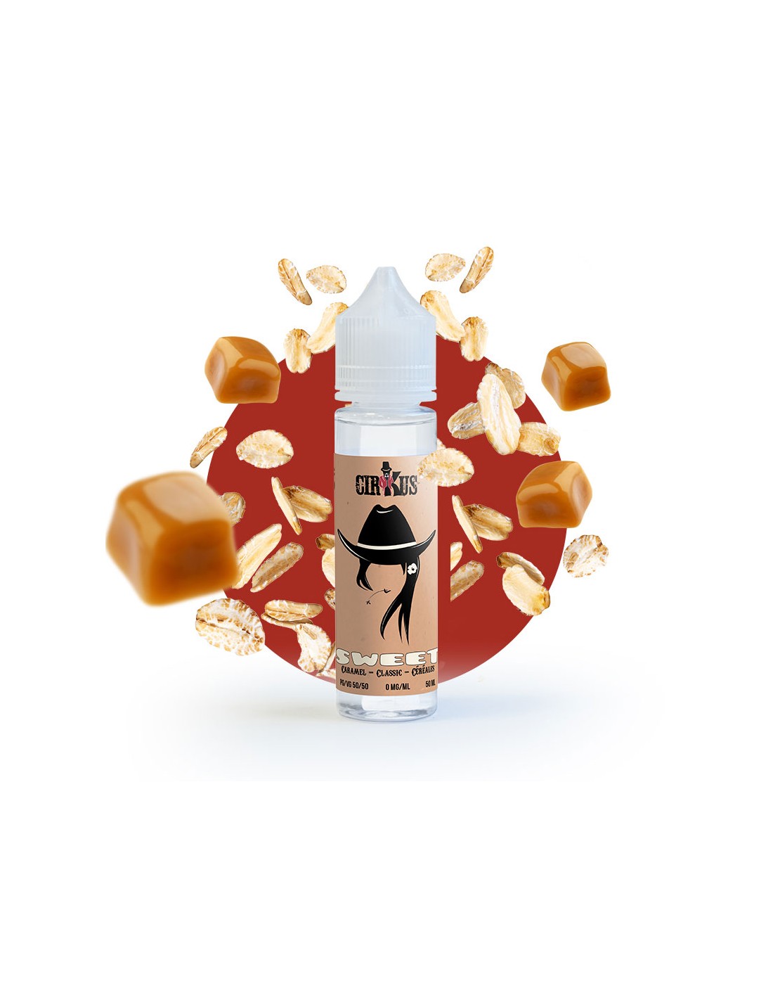 Le prêt à booster 50ml CIRKUS, sweet, est un dur au cœur tendre : une base de classic blond et de céréales sur un lit de crème caramel.