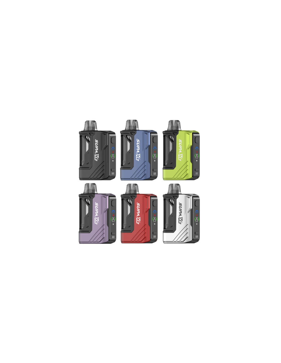 Équipé d'une batterie intégrée de 1000mAh et pouvant monter jusqu'à 25W de puissance, le Kit Supa X3 est un Pod en Open System avec une cartouche Double Mesh Coil changeable pouvant contenir jusqu'à 20mL de liquide remplissable sur le côté.