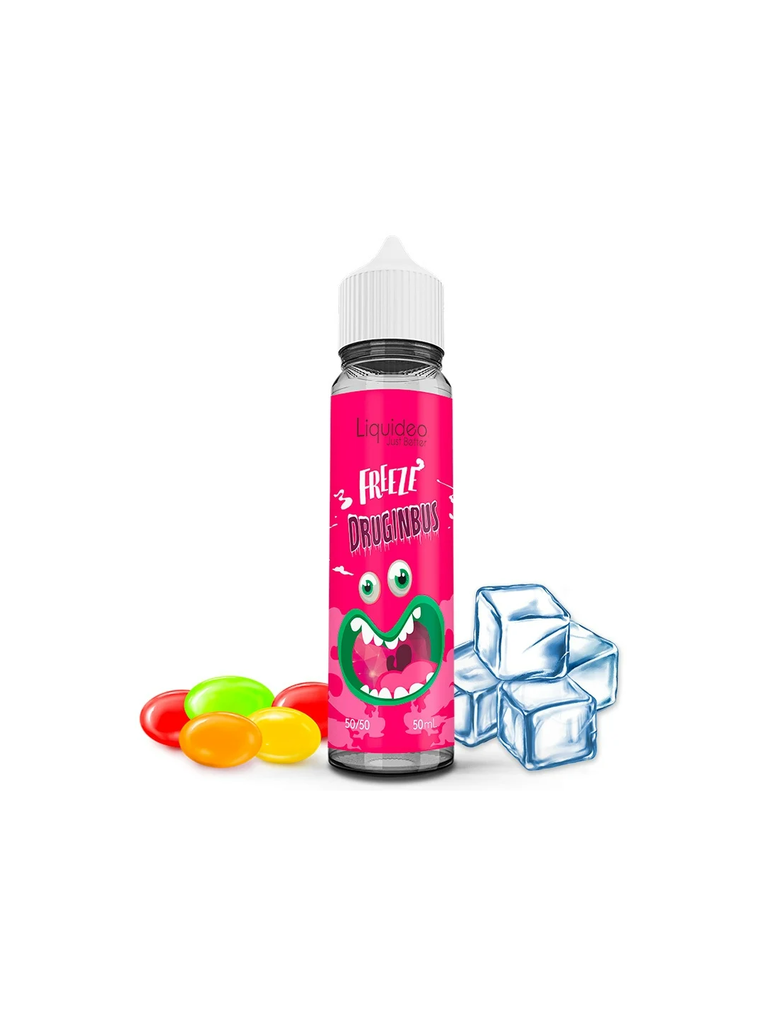 Le prêt à booster 50ml druginbus freeze, Une recette haute en couleurs, retouvez vos savoureux bonbons au coeur tendrement fruité agrémenté d'une fraicheur renversante